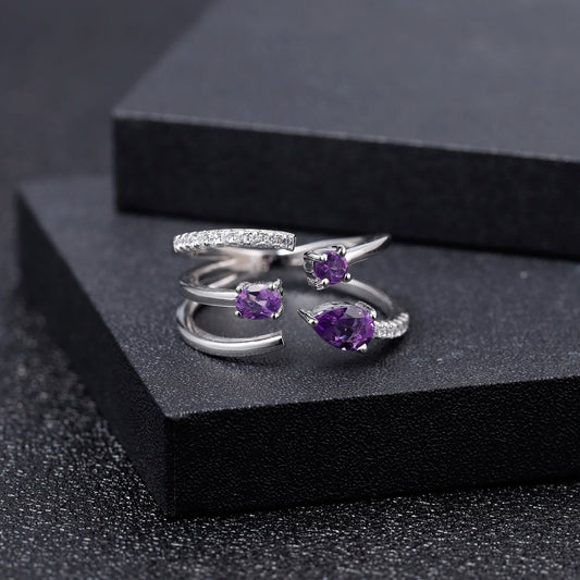 Gem's Ballet 925 Sterling Silver Amethyst Swirl Ring – Elegant & Adjustable