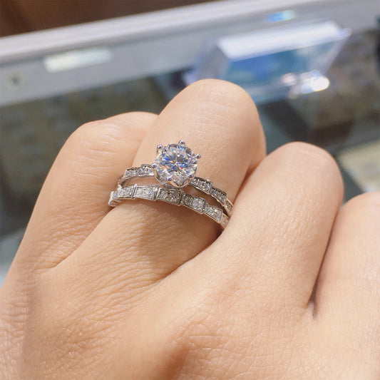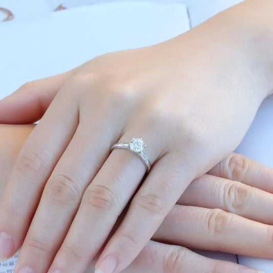 GEM'S BALLET 925 Sterling Silver 6-Prong Moissanite Ring – Classic Elegance