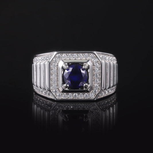 GEM'S BALLET Luxurious Men's Sapphire Ring – Bold & Sophisticated
