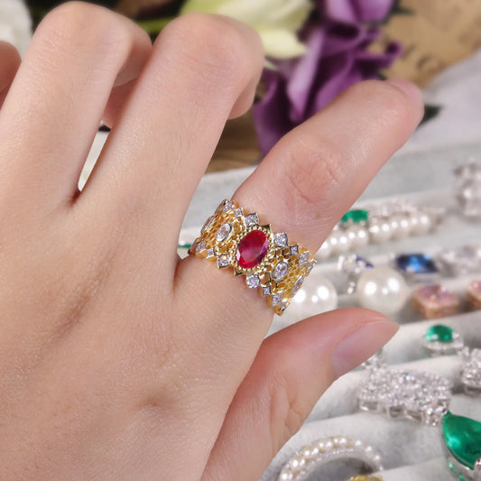 GEM'S BALLET Lab-Created Ruby Engagement Ring – Vintage Art Deco Elegance