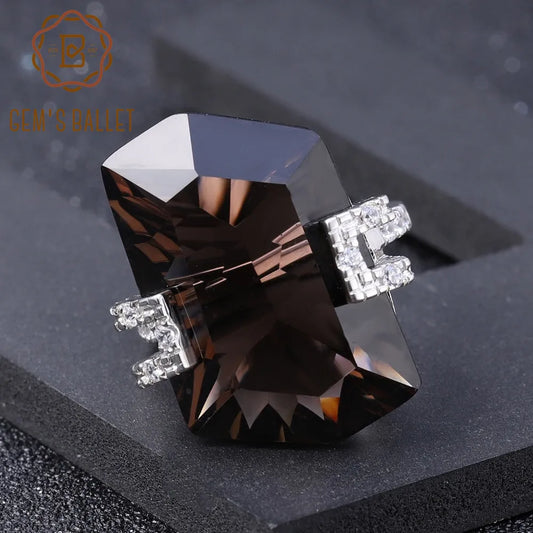 GEM'S BALLET Luxury 925 Sterling Silver Vintage Cocktail Ring – Smoky Quartz Elegance