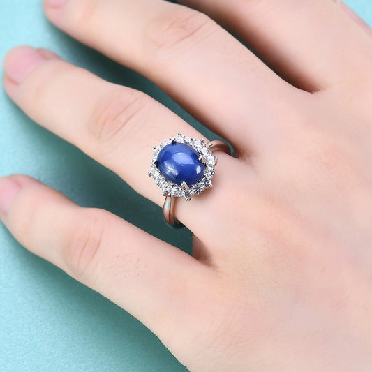 GEM'S BALLET Lab Blue Lindy Star Sapphire Halo Ring – Elegant Cocktail Jewelry