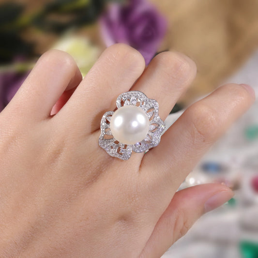 GEM'S BALLET Art Deco Freshwater Pearl Engagement Ring – Vintage Elegance