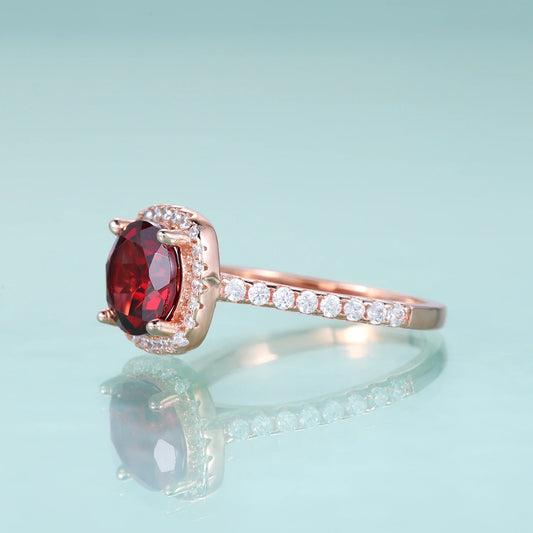 GEM'S BALLET 925 Sterling Silver Red Garnet Halo Ring – Elegant February Birthstone Jewelry